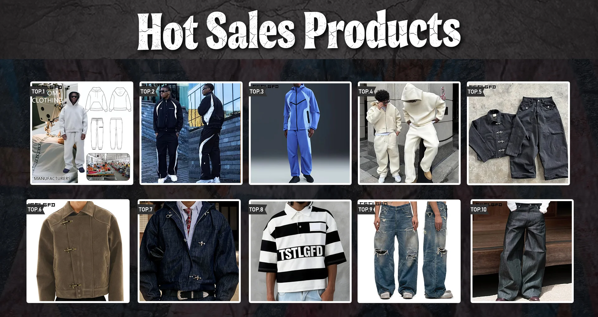 ผลิตภัณฑ์หลัก:แจ็คเก็ต, เสื้อยืด, hoodies, เสื้อโค้ท, กางเกง